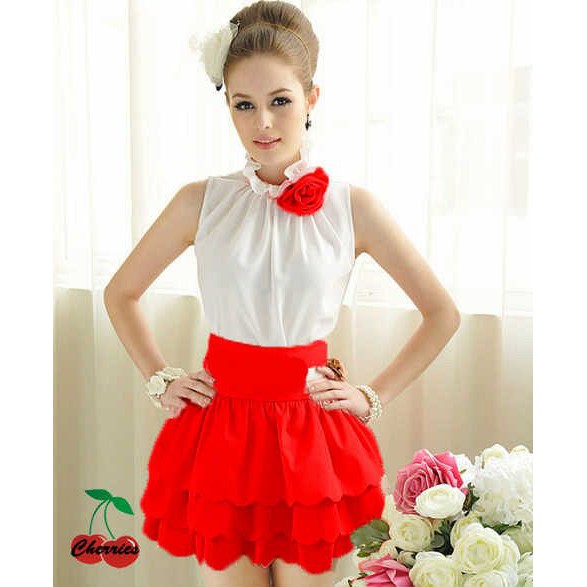 setelan denga atasan bahan silk + bros+rok spandek, fit to L