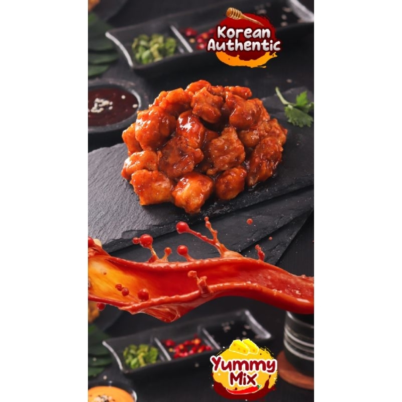 Bahan produk: Ayam fillet bumbu tepung + saos/bumbu ala Korea