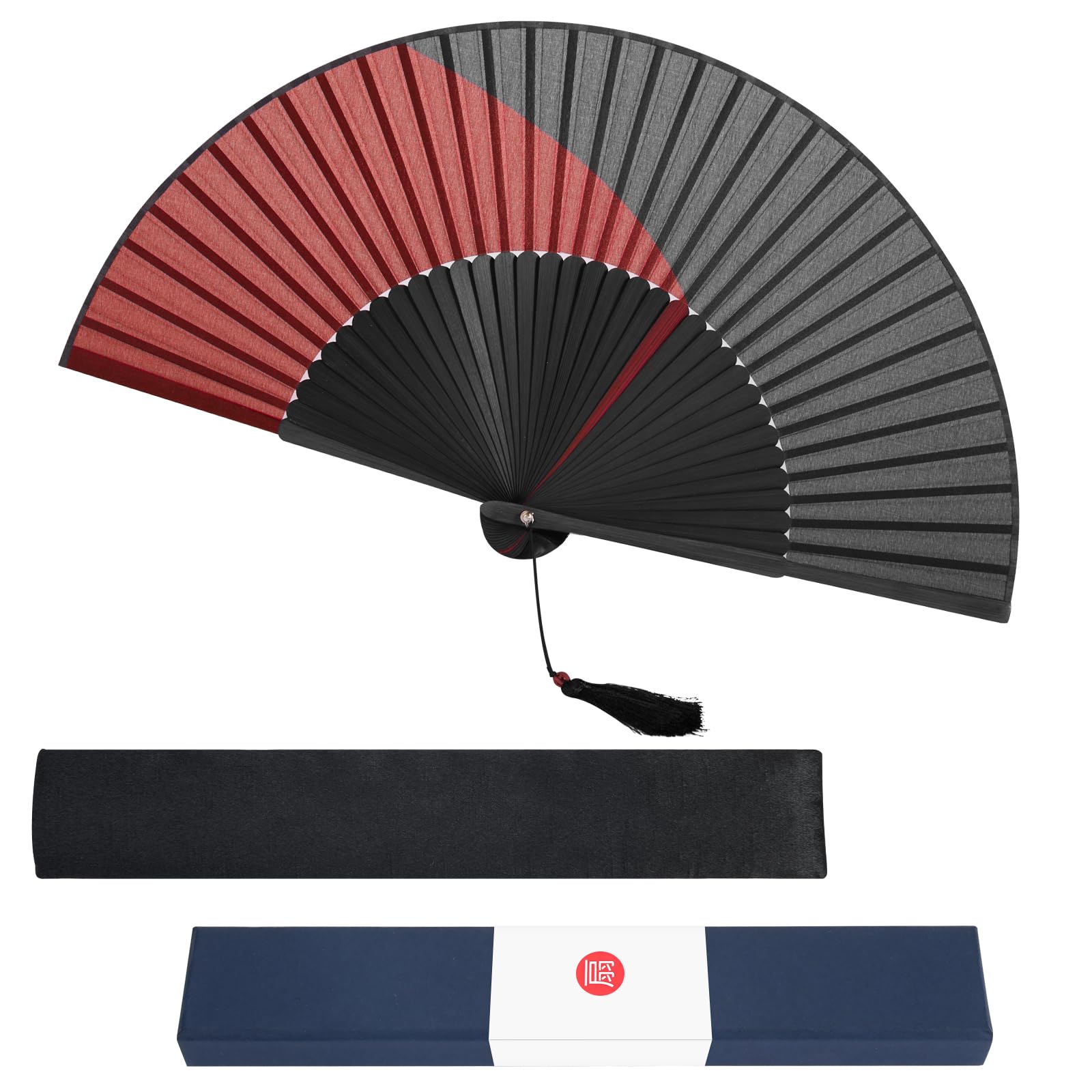 Dockii Складной Сделано из Складного Бамбука и Подарочная Коробка и Пакет Идеально для Лета Японский Красный Мужской Веер, Прочный, Япония, Легкий, Популярный, Мужской Веер,