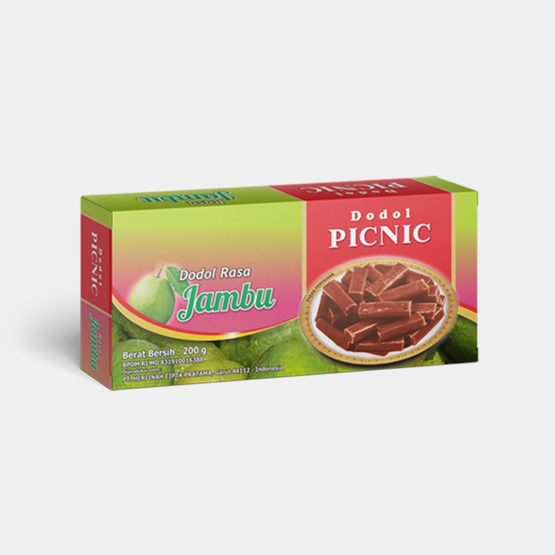 Dodol Garut PICNIC Adalah Makanan Tradisional Asli Indonesia yang telah di kenal selama berpuluh-puluh tahun. Dodol Picnic Rasa Jambu Adalah Dodol Garut yang telah disempurnakan, dengan proses pengolahan secara bersih dan diawasi secara teliti sehingga tidak di ragukan lagi mutu dan kualitasnya. Sangat cocok sebagai hidangan bagi anda dan keluarga. Edisi : Dodol Picnic Aneka Rasa Buah