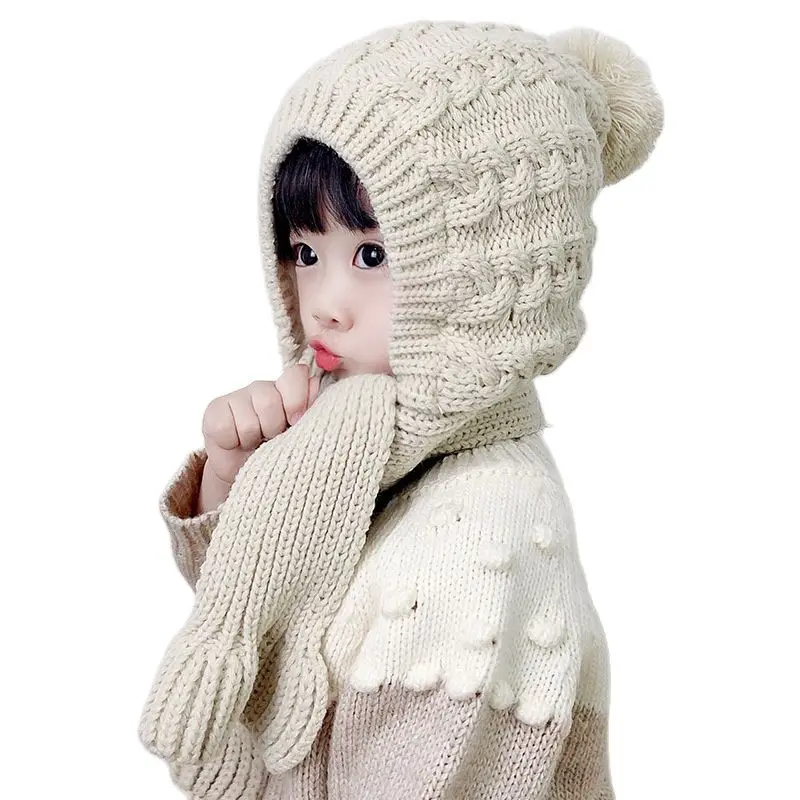 Doitbest шапочка для малыша, девочки Защитная Шея цельная ветрозащитная зимняя детская однотонная вязаная шапка теплая акриловая Детская шапка-ушанка для мальчиков
