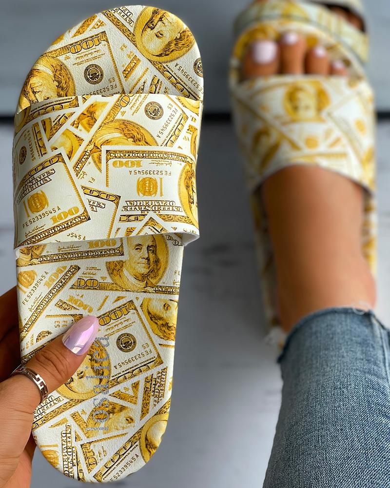 Dollar Print Open Toe Slide Slipper, Yellow