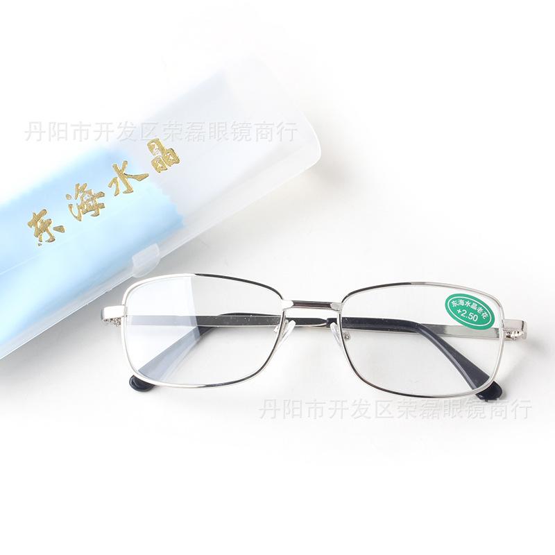 Donghaishuijing Стеклянные нескладные серебряные очки для чтения с камнями в серебряной оправе Очки для дальнозоркости Бегущие реки и озера