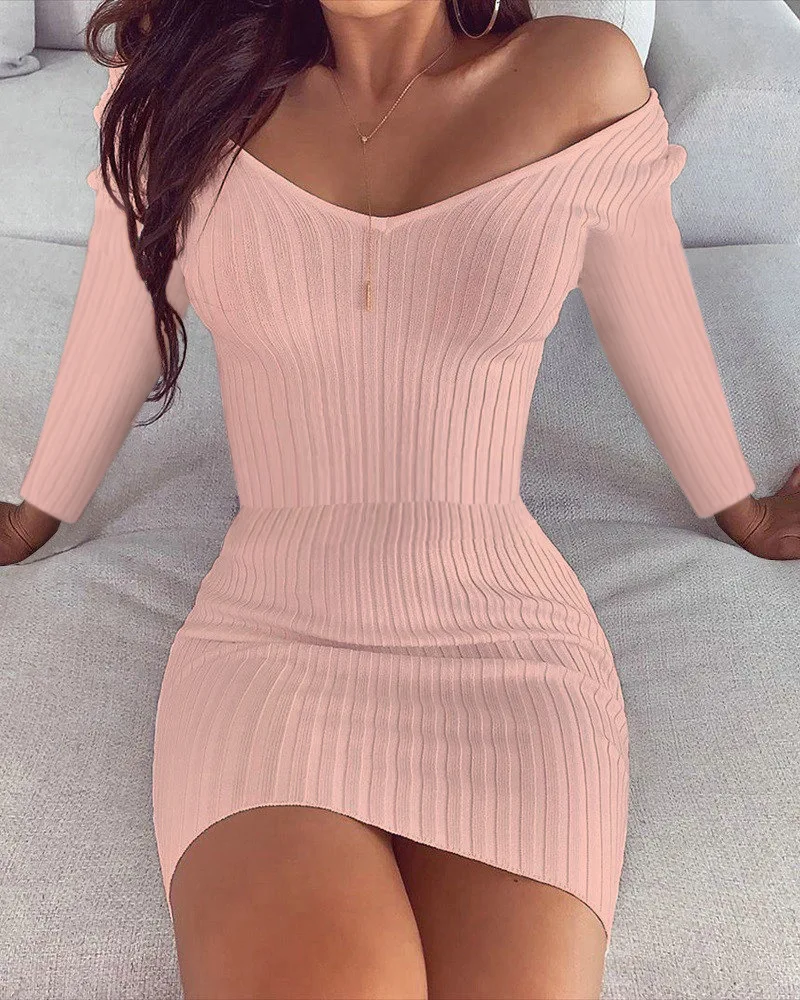 Donsignet женское платье; Пикантные, модные, повседневные, v-образный вырез, однотонная Цвет тонкая талия, платьес длинными рукавами однотонное ж...
