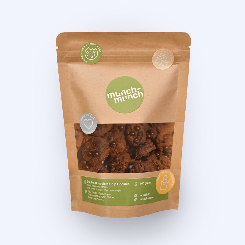 Kue kering rasa coklat bertekstur krispi dengan corn flakes di dalamnya dan ditaburi chocolate chips di atasnya.