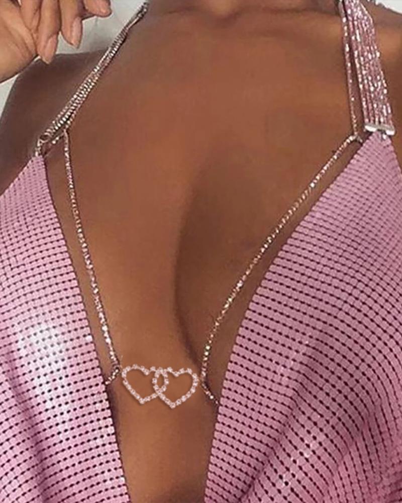 Double Heart Rhinestone Body Chain, Gold