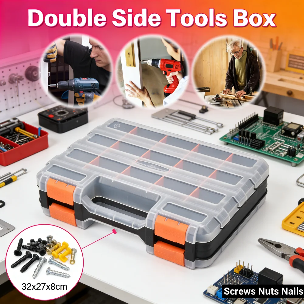 Double Side Tools Box Organizer Tool Storage Box Multifunctional Portable Tool Box Toolbox Container for Screws Nuts Small Parts