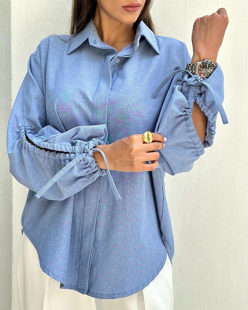 Drawstring Ruched Button Design Shirt, Blue