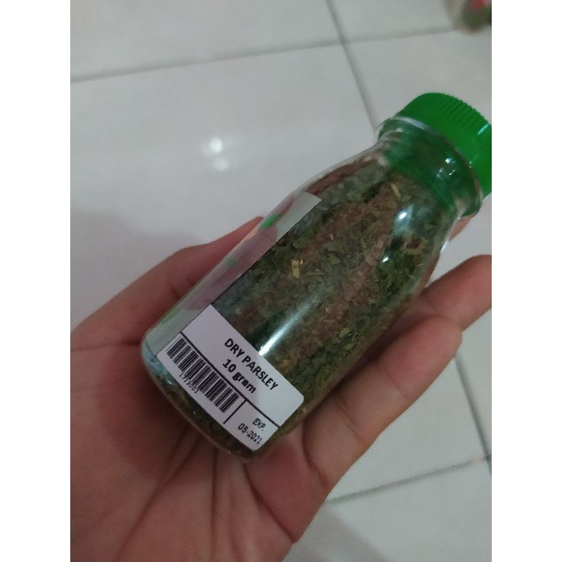 Parsley kering biasa ditaburkan di atas pizza, spaghetti, mie, bubur ataupun sop, wangi dan warna dari daun parsley akan menambah lezat makanan . Bisa utk bubur / masakan pada makanan anak .