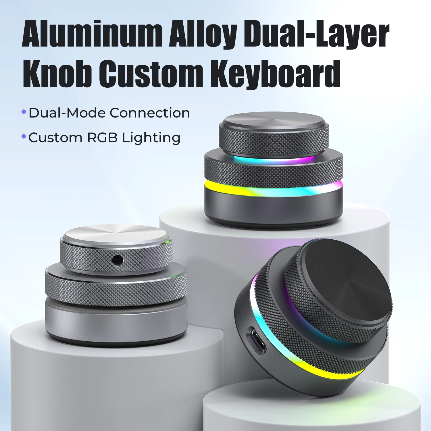 Dual-Layer Knob Wireless Custom Keyboard RGB Custom Control Volume Knob Multimedia Office Craphic Video Audio Editing Artwork