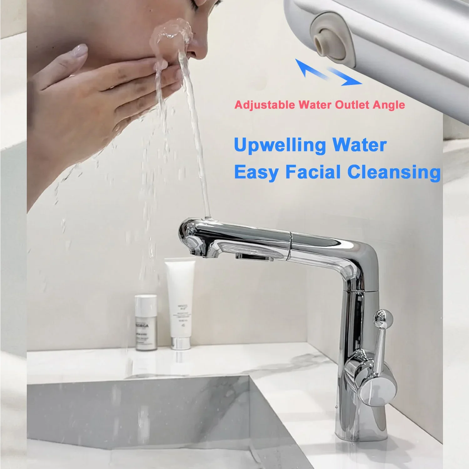 Dual Temperature Control Three Modes Pure Copper Faucet Pull Up Lift Bathroom Faucet 360° Rotation Kitchen Sink Faucets