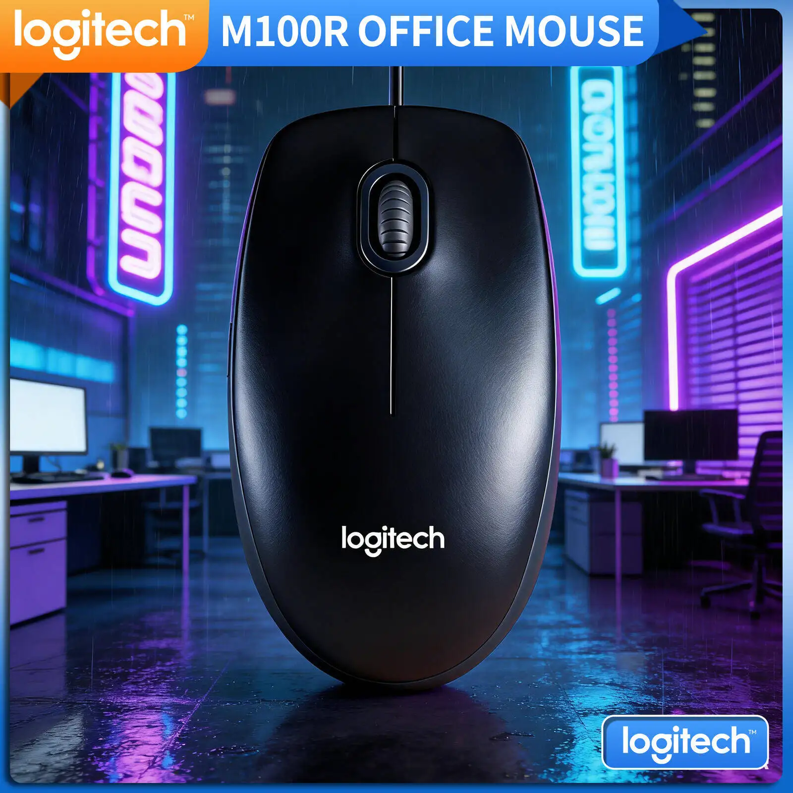 Durable Logitech M100R USB Wired Optical Mouse 1000DPI Tracking Plug Play Design for Office Home School Computer Laptop