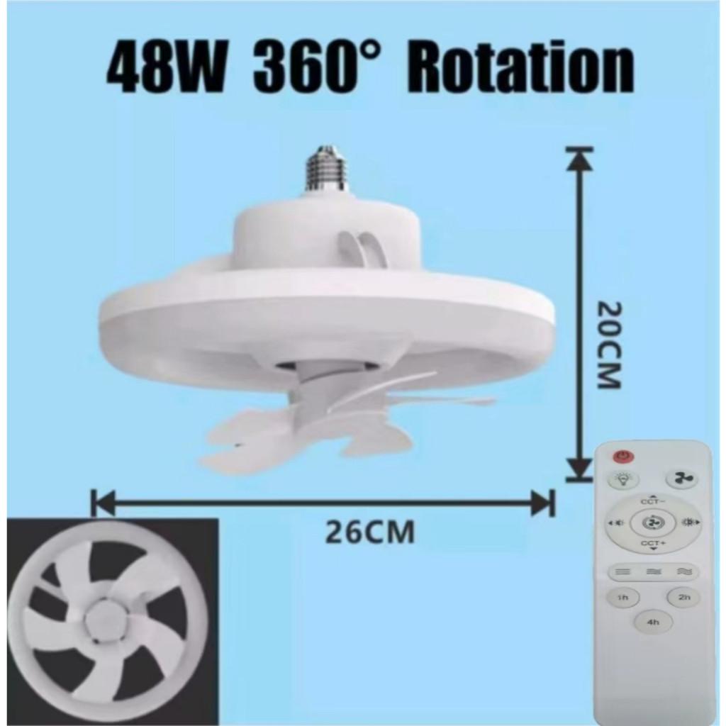 E27 Вращение 360° 48 Вт Светодиодный потолочный светильник-вентилятор с пультом дистанционного управления Свет 3000k-6500k Rotation 48W