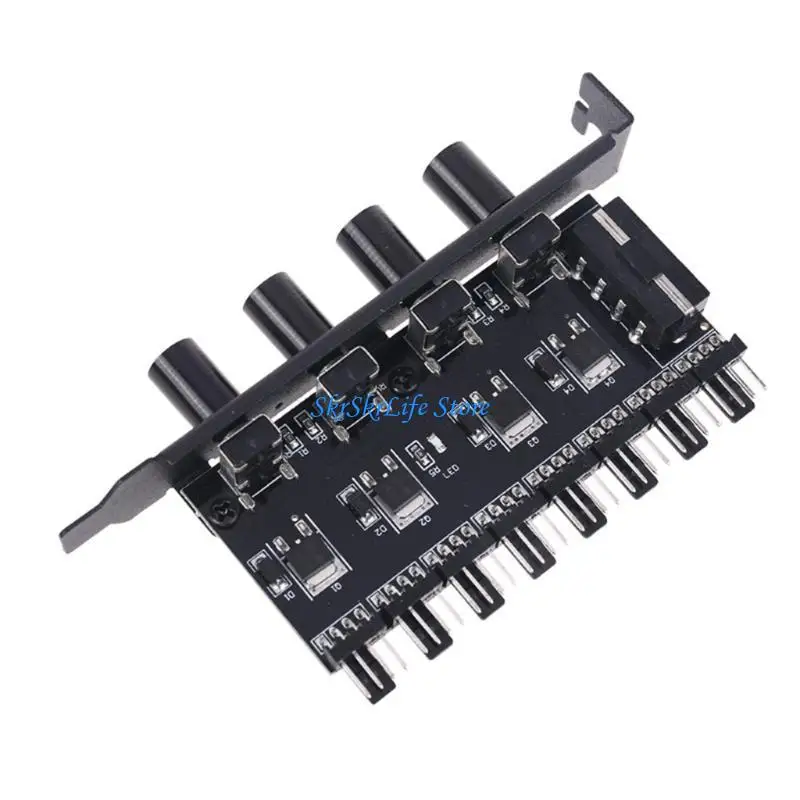 E65E 12V Easy Install 1 To 3 8 Way Case Cooling Fan Hub 4Pin 3Pin Speed Controller Practical Regulator Splitter Computer