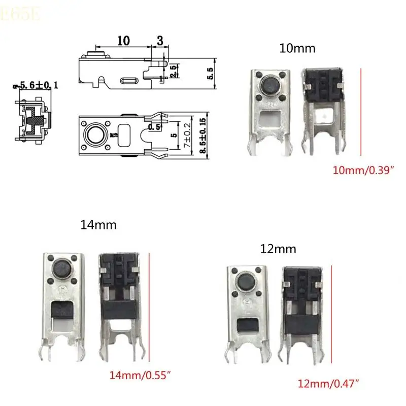 E65E 2PCS Горизонтальный мгновенный наметный тактильный переключатель мыши нажатия кнопки нажатия такта тактильного 2 клеммы мм