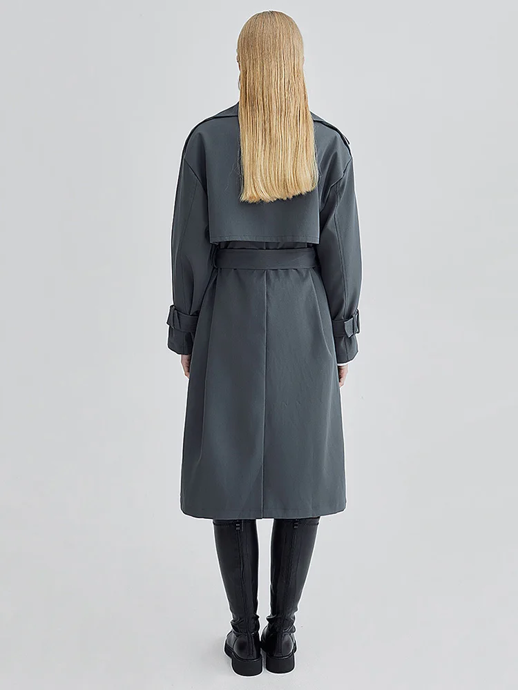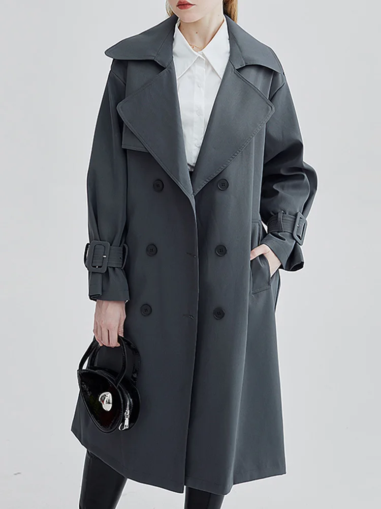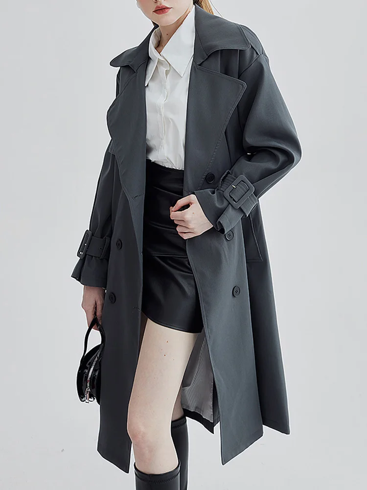 [EAM] женский темно-серый Тренч большого размера с поясом, новая свободная ветровка с отворотом и длинным рукавом, модная весенне-осенняя 2023 ...