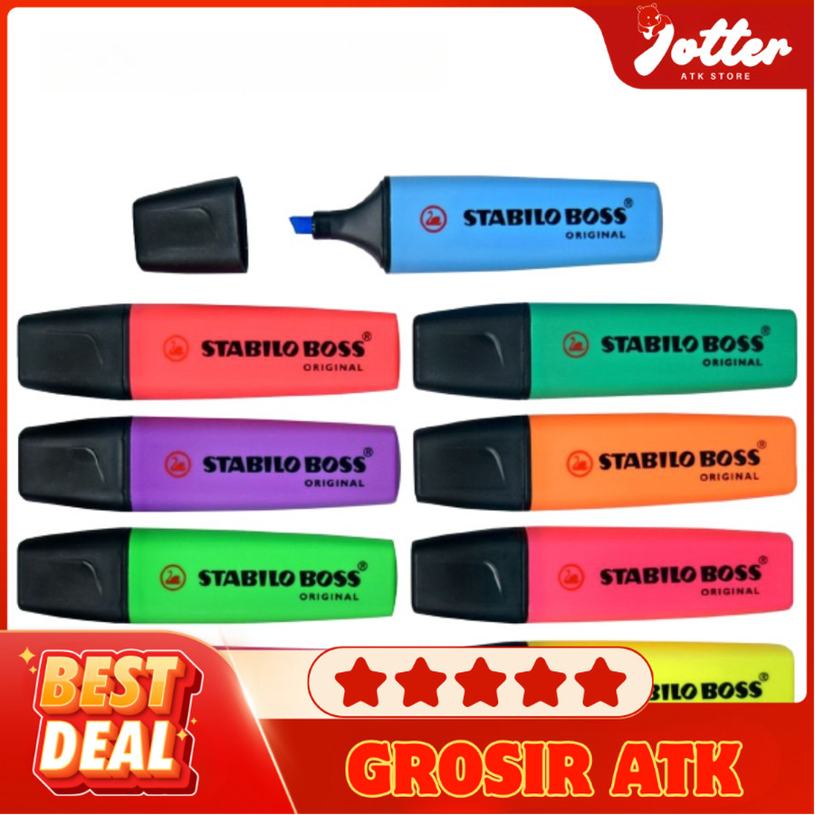 - Stabilo BOSS Original dilengkapi teknologi Anti-Dry-Out, produk tidak kering walau dibiarkan terbuka tanpa penutup selama 4 jam. Sehingga pada waktu belajar tidak usah repot membuka-tutup highlighter-mu!
