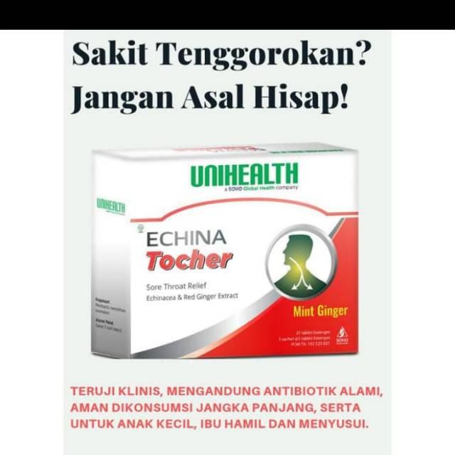 Echina Tocher merupakan tablet yang mengandung ekstrak Echinacea purpurea dan Red Ginger yang diproses memenuhi pharmaceutical grade.