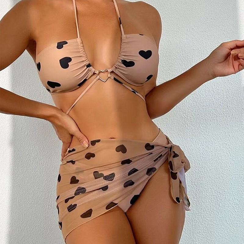 EDOLYNSA новый летний купальник из трех частей в стиле ретро с принтом любви, верхняя юбка с подвесным ремнем, сексуальный купальник женский пляжный купальник из трех частей L22