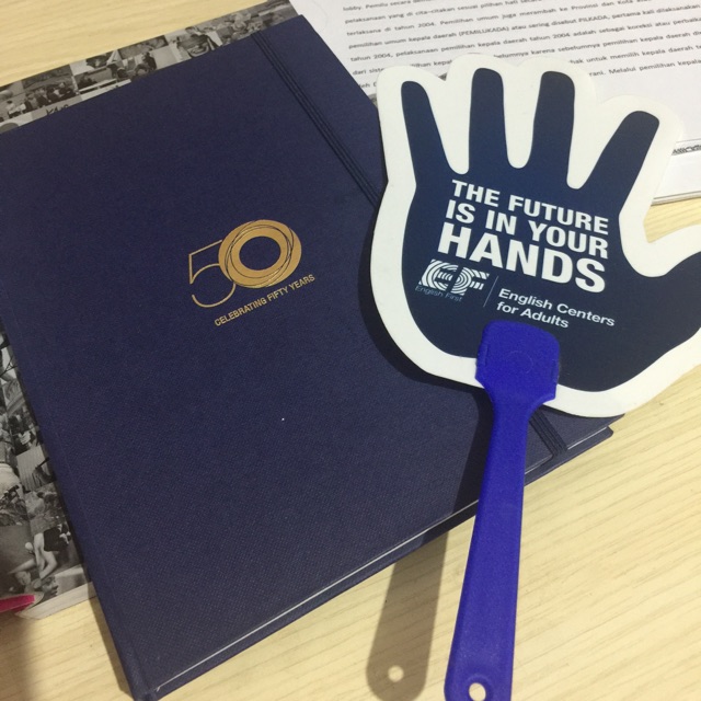 Ga semua orang bisa punya ini. Buat dapetin buku ini doang harus les di EF yang you know lah, expensive wkwk. Masih bersih ya sis, belum pernah dipake, masih ada plastiknya juga~