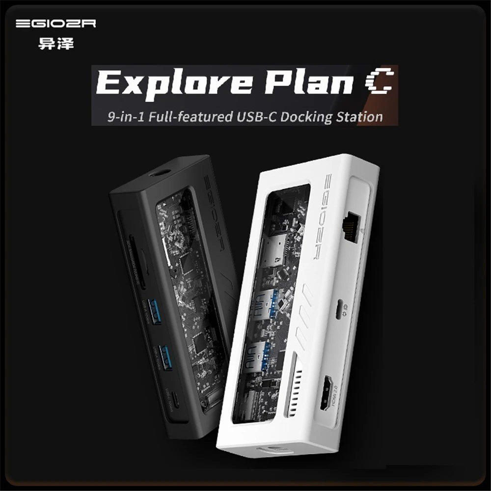 EGIOZR Explore Plan C 9-in-1 Full-featured USB-C Hub Video Output Reverse Power Supply USB3.2GEN2 MST Mode RJ45 Docking Station