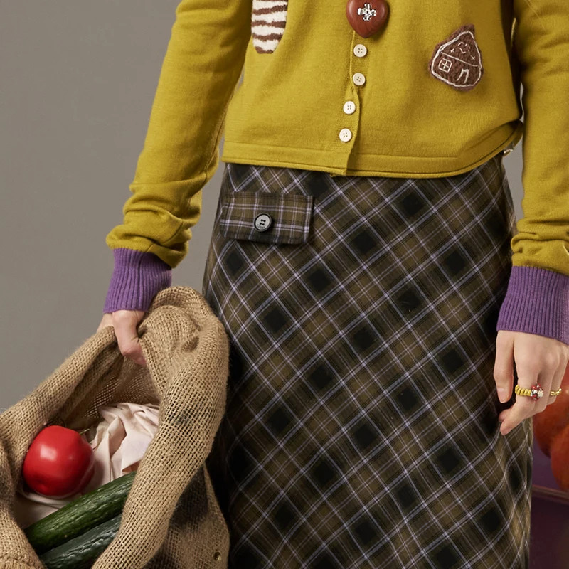 ELFSACK 2025, осенние новые поступления, повседневная мягкая ретро-лаконичная клетчатая прямая длинная юбка для женщин