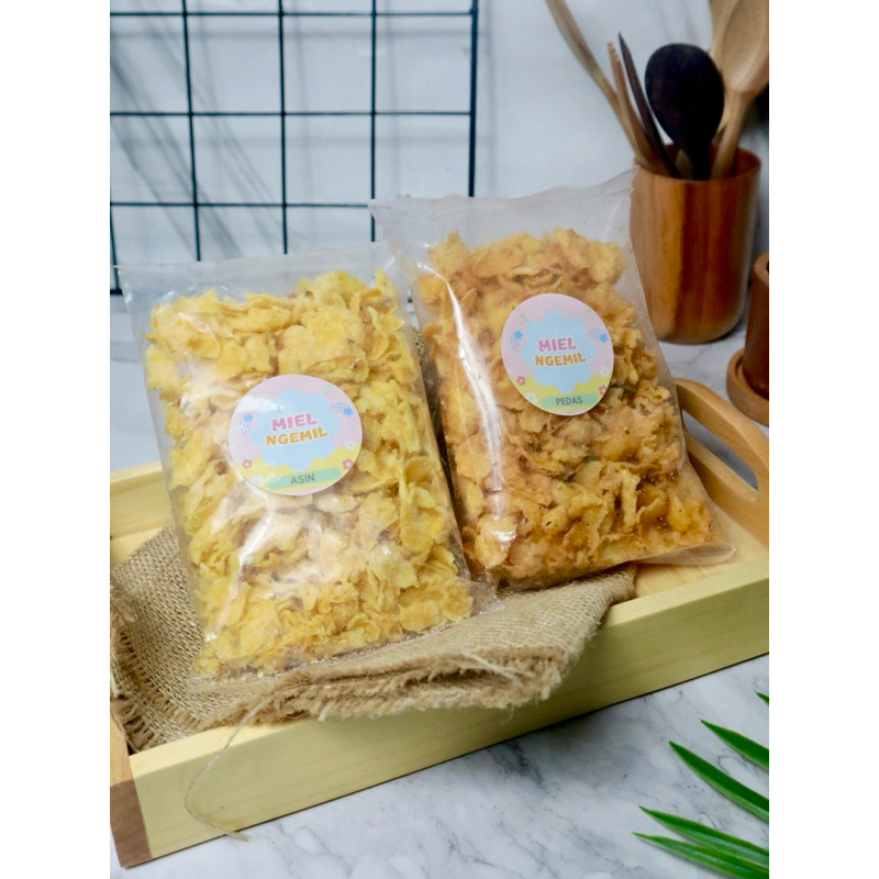 Cemilan Emping Jagung Mielngemil merupakan cemilan homemade yang berbahan dasar jagung. Terdapat 2 varian rasa yaitu Pedas Doang dan Asin Gurih dengan bumbu yang super melimpah dan rasa yang bikin ketagihan!