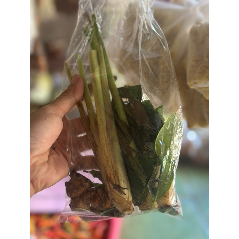 Isi jahe, kunyit, serai, kencur, daun salam, daun jeruk.