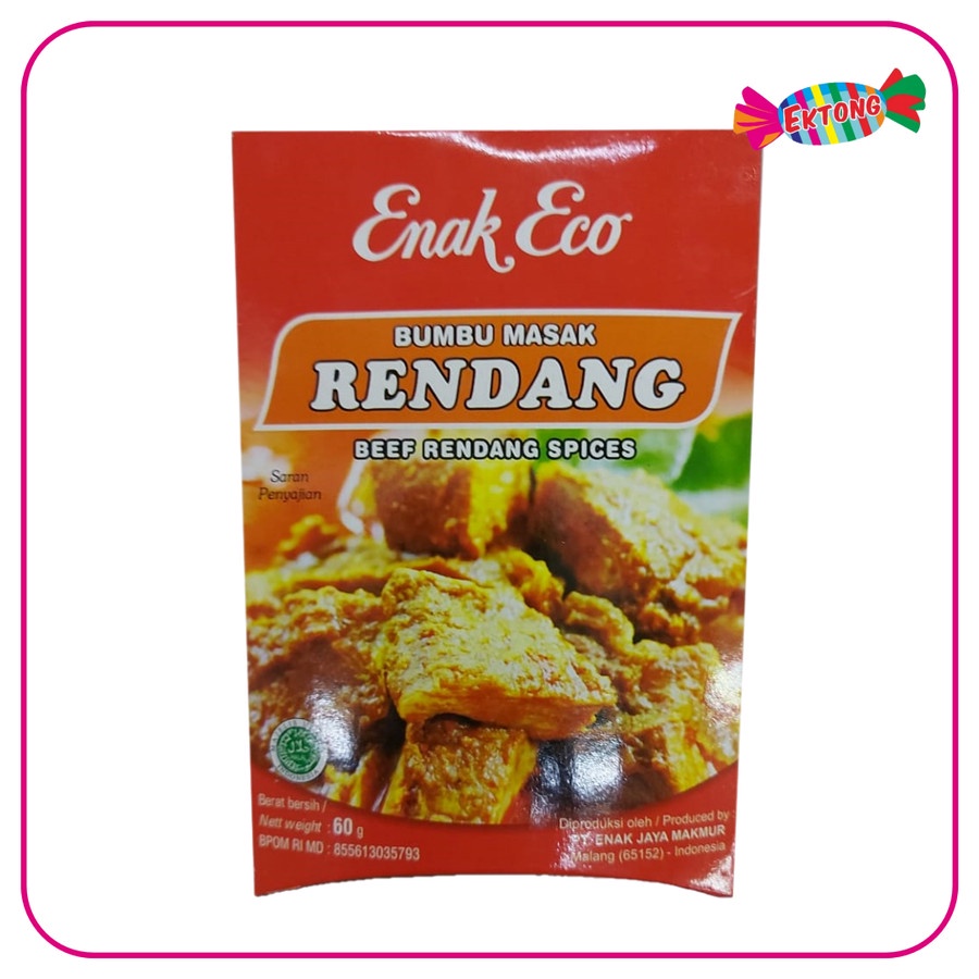 Enak Eco Bumbu Rendang 60gr merupakan salah satu bumbu instan yang praktis, Dengan memasak menggunakan bumbu racikan ini maka dapat menyempurnakan hidangan Anda sehari-hari. Bumbu ini dibuat dari perpaduan bahan-bahan dapur pilihan yang penuh kualitas. Menghadirkan cita rasa ala Indonesia yang pekat, rasanya dan khas benar di setiap suapan.