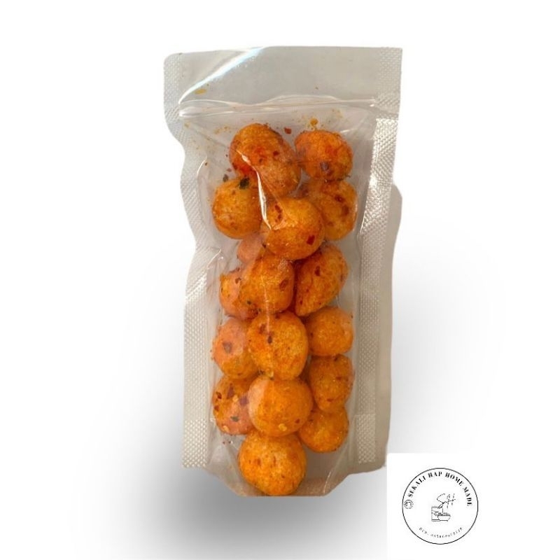 Basreng yang super renyah + gurih dengan varian pedas dan original , pas banget buat nemenin saat makan pake nasi anget , cocok untuk kamu yang hobi makan pedas , bisa buat cemilan sambil ngerjain tugas , nonton tv / film ngedrakor.