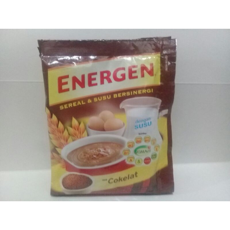 MENJUAL ENERGEN PER 1 SASET , MINUMAN SERBUK RASA COKLAT DENGAN SEREAL DAN SUSU BERSINERGI SUMBER SERAT SUSU & TELUR FORMULA.