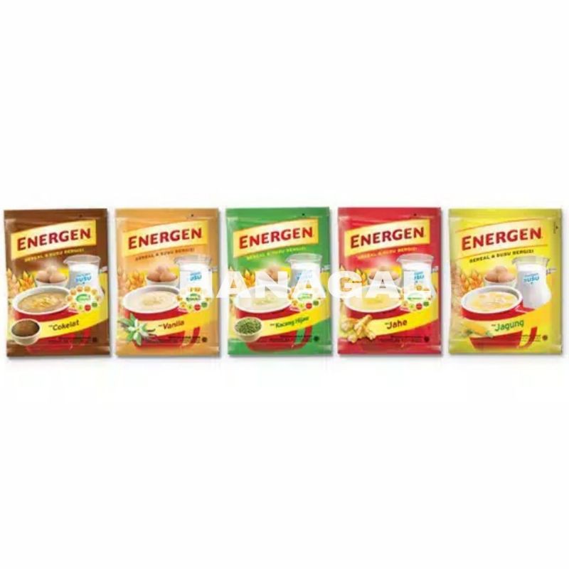 Energen adalah minuman susu dan sereal yang cocok untuk menghilangkan rasa lapar. Minuman ini juga mengandung karbohidrat, paduan vitamin, mineral dan protein yang dibutuhkan tubuh dalam komposisi yang tepat. Rasanya ada beberapa macam seperti kacang hijau, vanilla dan coklat, jahe
