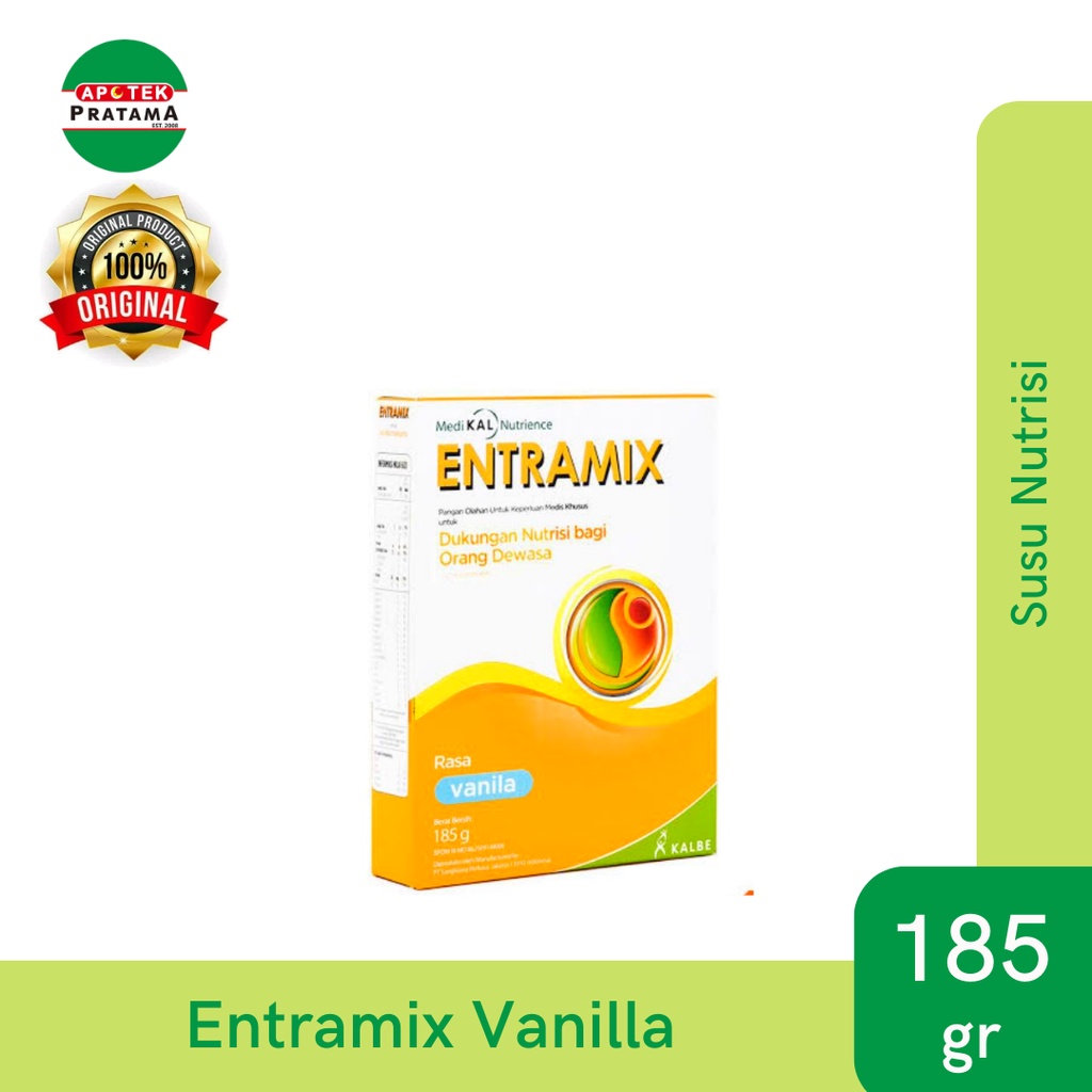 Entramix adalah Makanan cair dengan nutrisi lengkap dan seimbang sebagai pengganti makan utama atau suplemen makanan yang dapat memenuhi kebutuhan gizi harian orang dewasa terutama yang memiliki masalah kondisi kurang sehat, lansia, masa penyembuhan atau tidak nafsu makan.