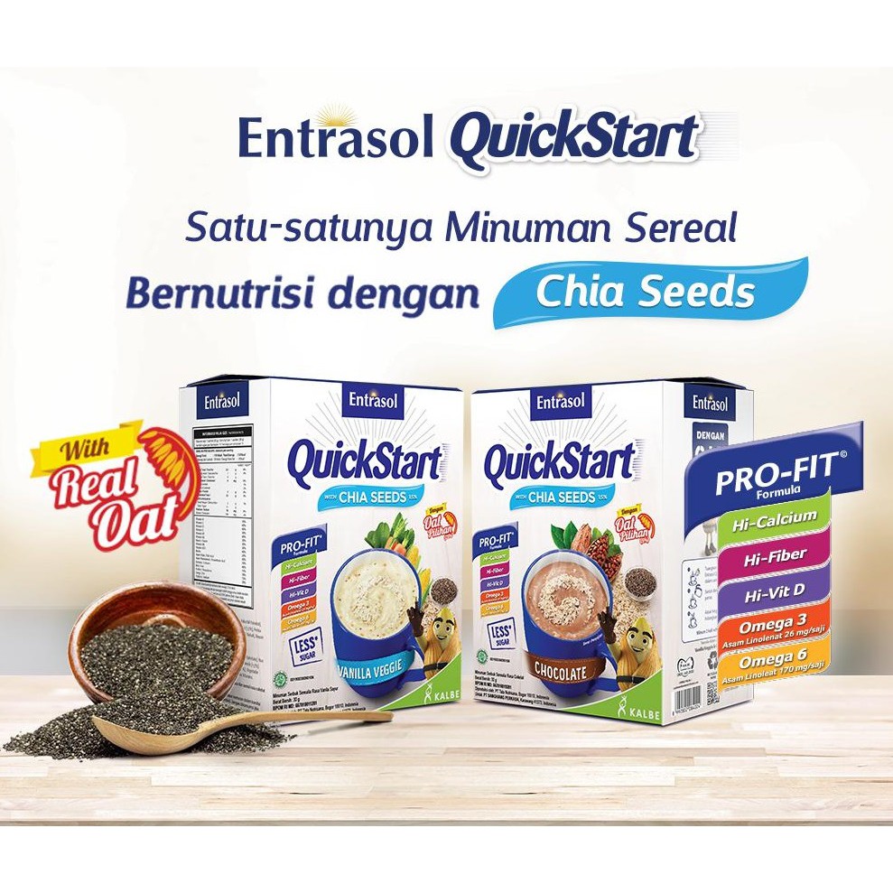 Entrasol QuickStart Dengan OAT Pilihan Diperkaya Dengan Chia Seed Yang Rendah Gula, Tinggi Serat, Serta Mengandung Omega 3 & Omega 6.