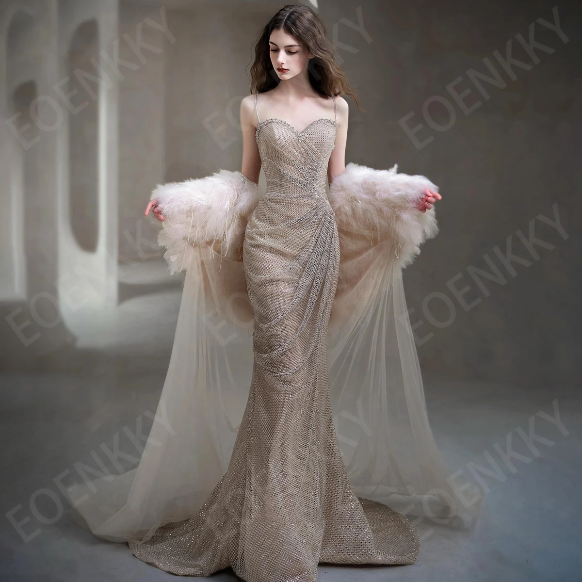 EOENKKY Роскошные блестящие вечерние платья русалки женское длинное свадебное платье шаль с перьями платье для выпускного вечера с вырезом в форме сердца по индивидуальному заказу Роскошные русалки яркие вечерние плать