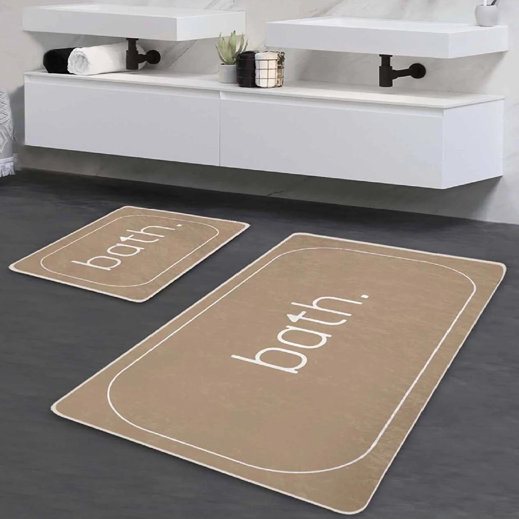 EPeddler Home Современная ванна Письменная цифровая печать Моющаяся нескользящая кожаная основа 2 коврика, набор ковриков для ванной 50 x 80 & 80 x 100 чёрный/белый