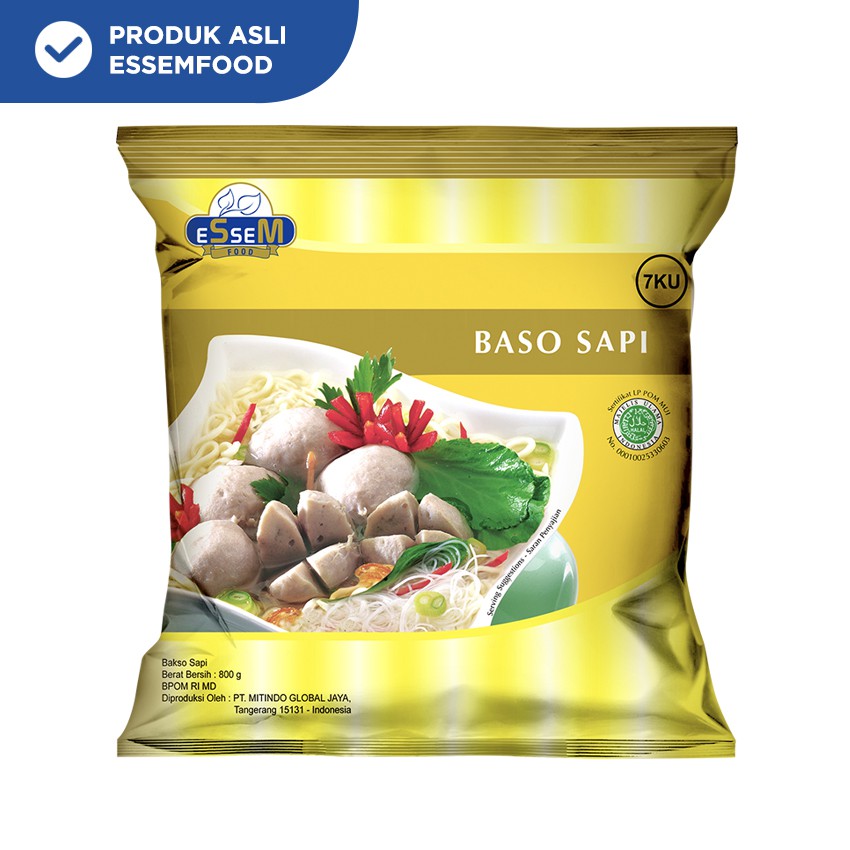 Terbuat dari sapi pilihan dan diproses dengan standart untuk memastikan kualitas rasa dan kesegarannya. Baso Essemfood adalah pilihan utama bunda ketika berkumpul bersama keluarga.