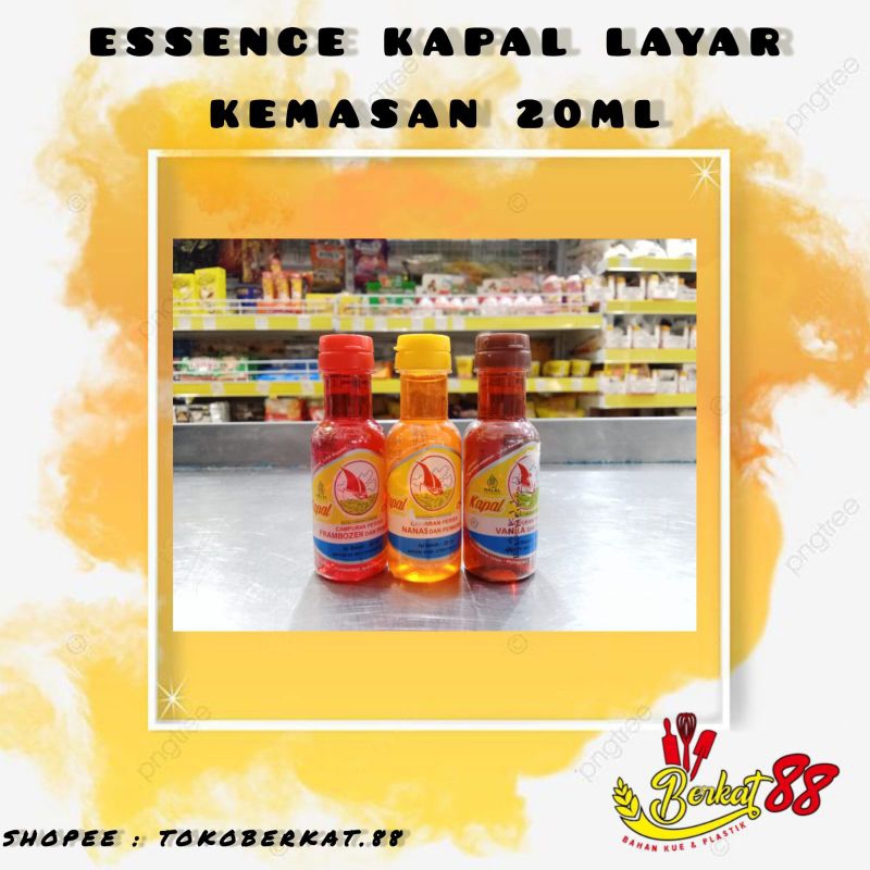 Essence Kapal Layar adalah bahan tambahan yang memberikan aroma manis dan segar pada berbagai makanan dan minuman. Essence ini sering digunakan sebagai bahan perasa dalam sirup, minuman, kue, dan makanan lainnya. Essence ini tersedia dalam berbagai varian rasa seperti frambozen, vanila, dan nanas.