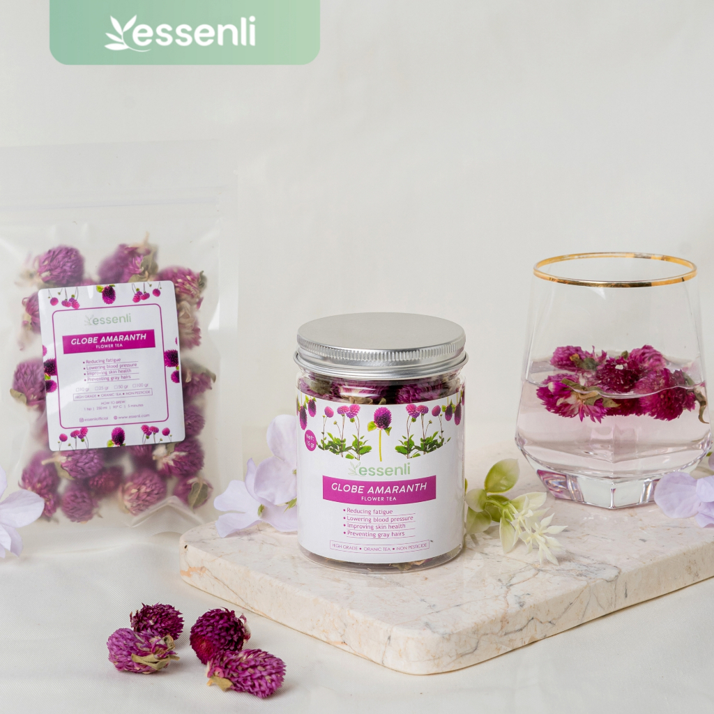 Globe amaranth merupakan teh herbal yang tidak mengandung kafein, melainkan vitamin, mineral, dan antioksidan.