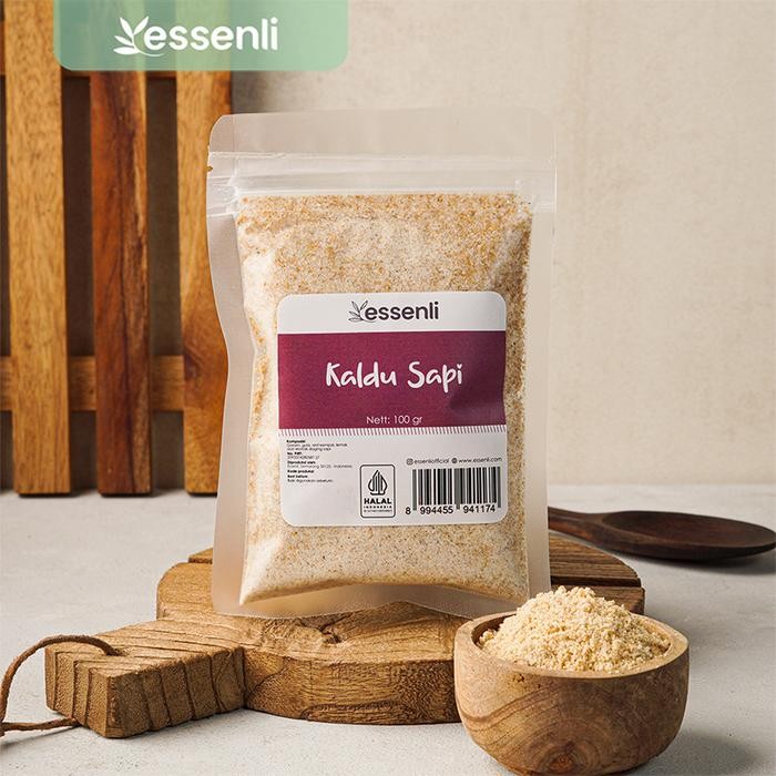 Kaldu Sapi Essenli terbuat dari sari rebusan daging atau tulang sapi yang diolah menjadi bubuk untuk memperkaya rasa masakan anda. Bisa digunakan untuk sup atau tumisan. Terbuat dari bahan pilihan asli tanpa campuran dan pengawet sehingga aman untuk dikonsumsi dan dengan citra rasa yang berkualitas tinggi.