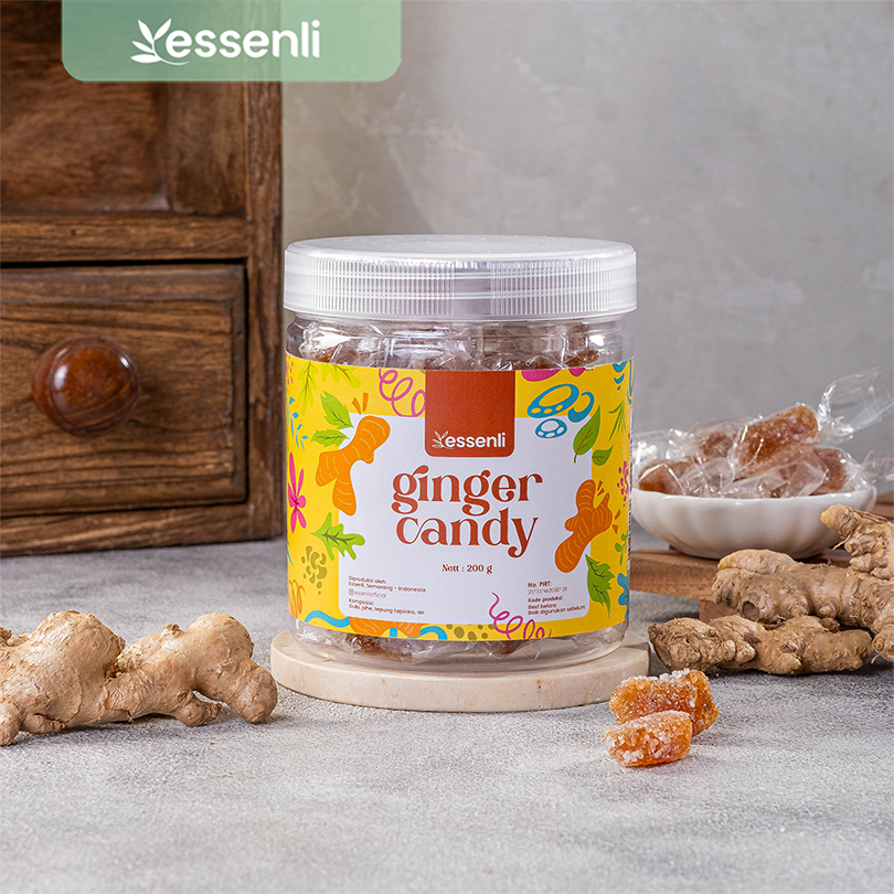 Ginger Candy Essenli terbuat dari Jahe dan gula asli tanpa campuran dan pengawet sehingga aman untuk dikonsumsi.