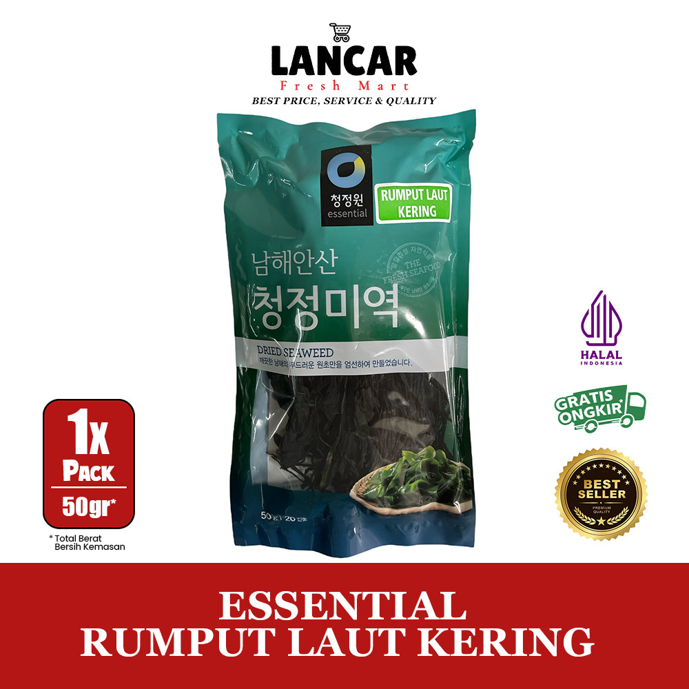 Essential Rumput Laut Kering 50gr adalah produk rumput laut kering (miyeok) yang berasal dari Korea, ideal untuk berbagai hidangan seperti sup rumput laut, salad, dan masakan kuah lainnya. Produk ini telah dibersihkan dan dikeringkan, sehingga siap digunakan setelah direndam.