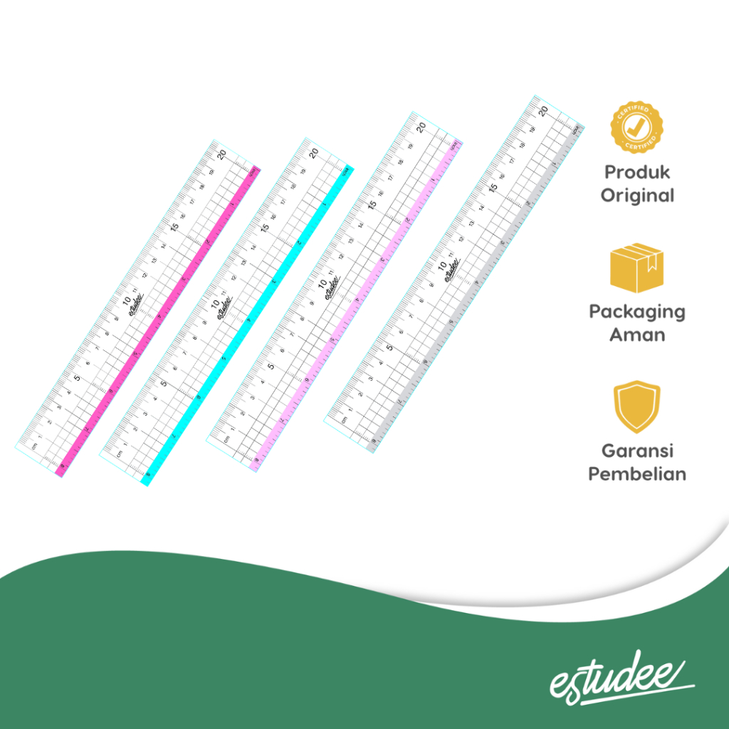 Penggaris Ukuran 20 cm merupakan alat pengukur dan alat bantu gambar yang dapat digunakan untuk menggambar garis lurus. Penggaris ini cocok digunakan untuk keperluan sekolah, rumah, kantor, dan lain sebagainya.
