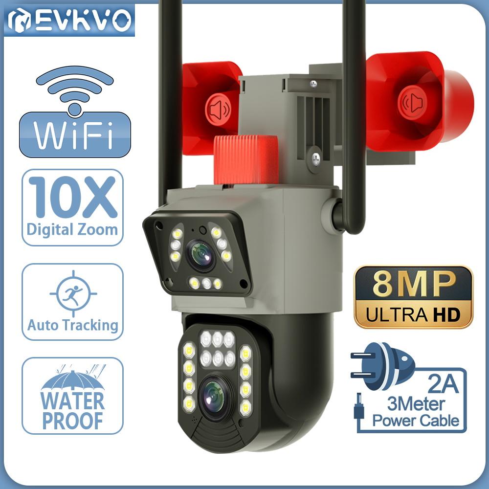 EVKVO 8MP 4K PTZ Wi-Fi IP-камера наблюдения Наружная безопасность Водонепроницаемая двойная линза Двойной динамик Красный и синий свет Сигнализация 10-кратный зум Отслеживание видеонаблюдения