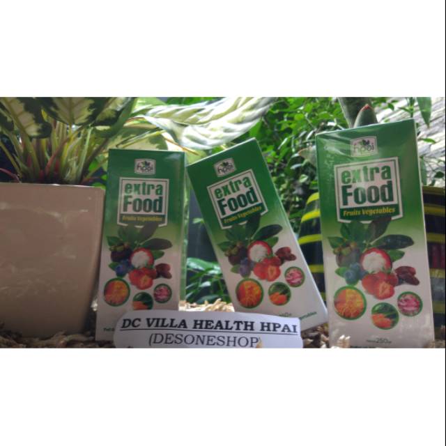 Extra Food HPAI, adalah makanan kesehatan alami yang dibuat dari sinergi 23 herbal buah-buahan dan sayuran yang kaya akan antioksidan & serat alami. Extra Food HPAI diformulasikan sebagai makanan suplemen herba yang berkhasiat untuk mengatasi berbagai penyakit dan bermanfaat bagi kesehatan tubuh. Dengan mengkonsumsi Extra Food HPAI ini akan memberikan perlindungan Anda dan keluarga dari RADIKAL BEBAS.