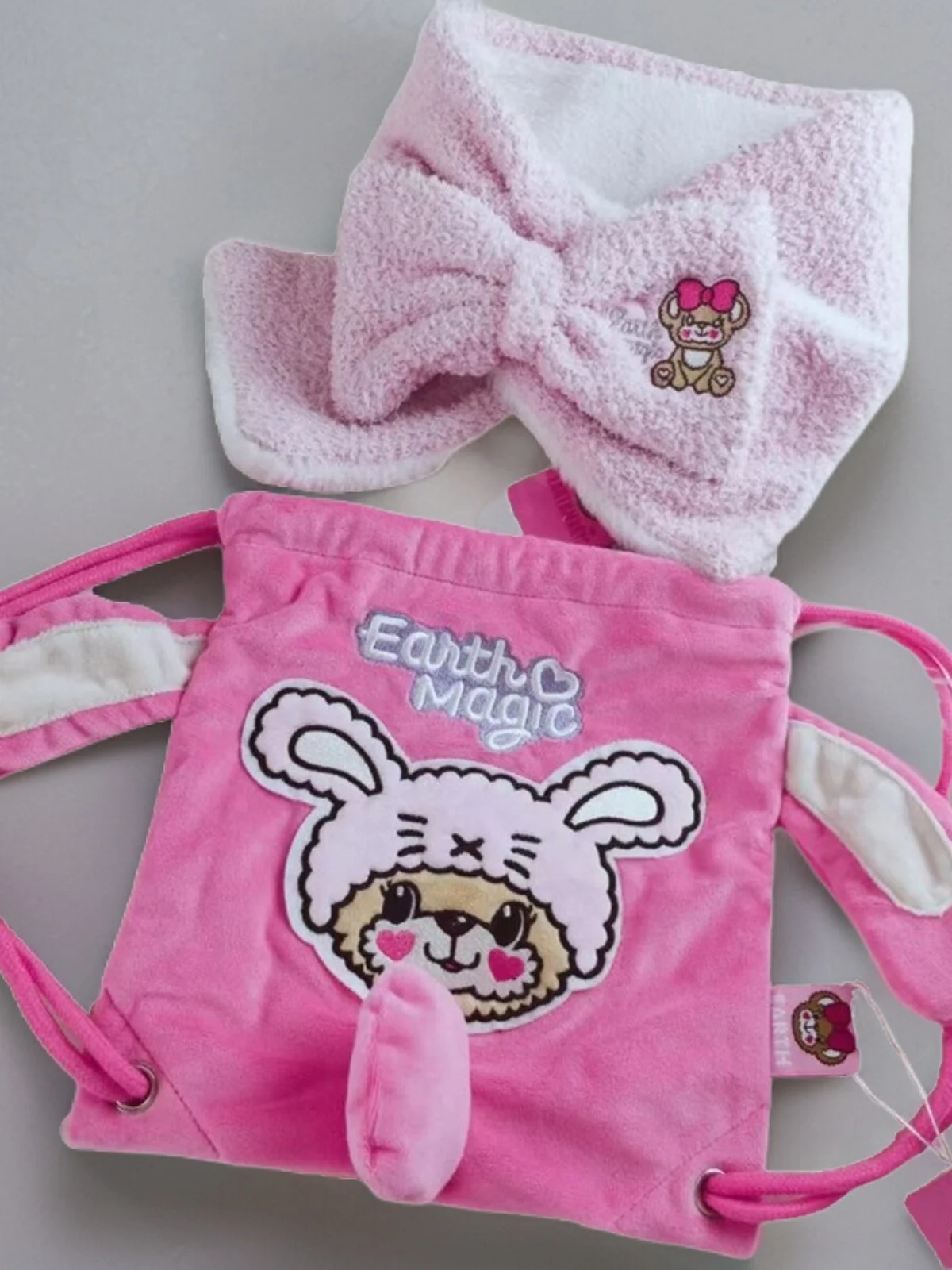 EarthMagic Medieval Pink Rabbit Drawstring Double Shoulder Small Backpack Polyester Material Fashionable Unisex Backpack