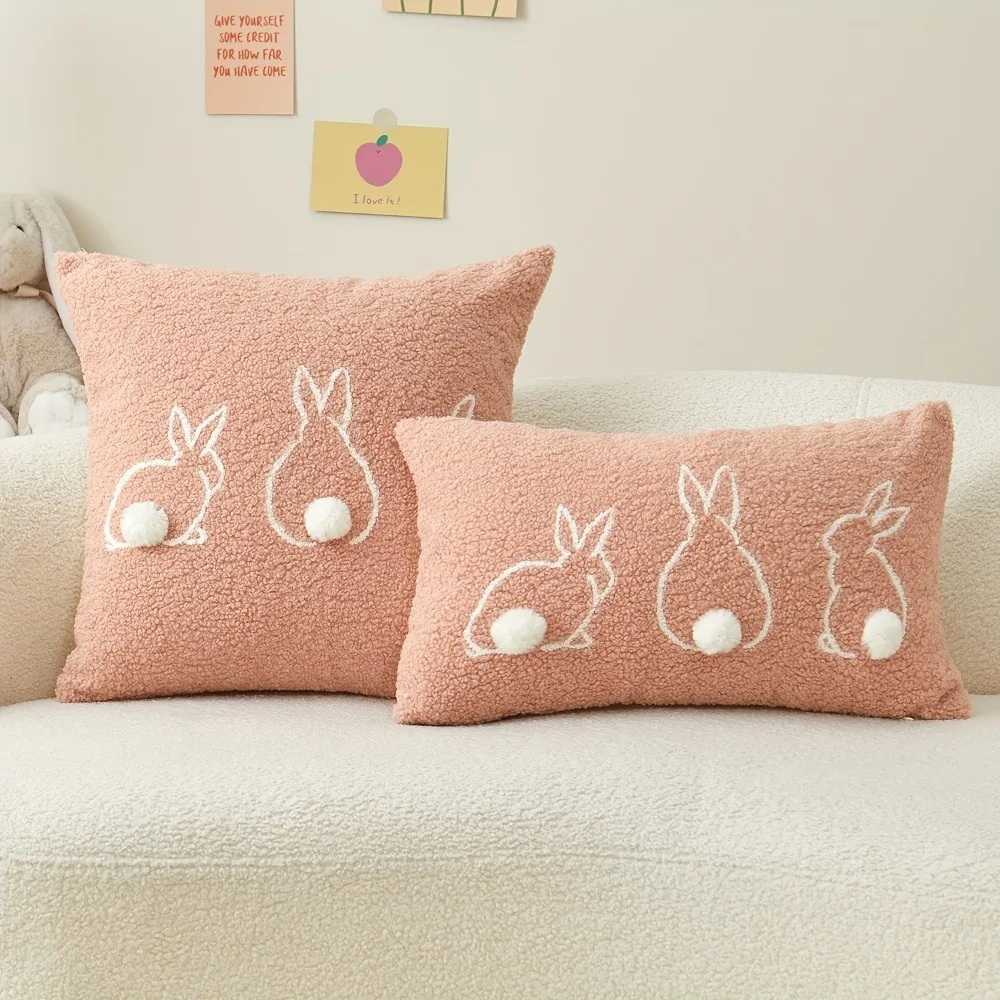 Easter Bunny Pillow Cover Hidden Zipper Skin-friendly Rabbit Pillow Case Square/Rectangular Embroidery Pillowslip Bed Room