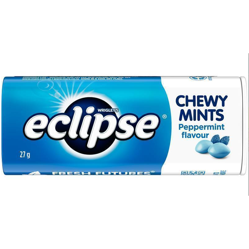 LET THERE BE FRESH with this tin of ECLIPSE Chewy Mints, starring everyone's favourite peppermint flavour! These delicious little chewy mints are perfect after a cup of coffee and give you the freshness to connect and be at your best at home, work or play. So, grab a tin, start a conversation, and celebrate life's meaningful connections - one freshening ECLIPSE PEPPERMINT flavoured chewy mint at a time!