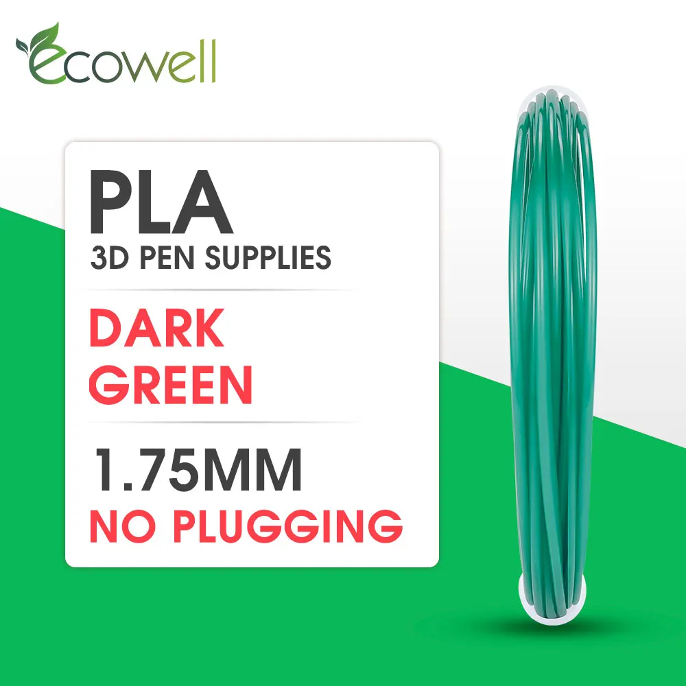 Ecowell, 1 шт., 1,75 мм, пла-нить, материал для 3d-печати, нить для 3d-ручки 5 метров, темно-зеленая, для 3d-ручки, принтера, 3d-ручки