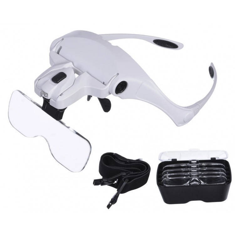 NO.9892B2 Лупа-очки бинокулярные с LED подсветкой, 5 сменных линз, пластик: 1Х, 1.5Х, 2Х, 2.5Х, 3.5X